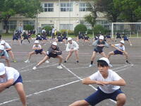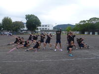 1・2年生は、団体演技の最終確認と練習を行いました。今週は、天候が不順で体育館での練習が多かったですが、上手に位置取りができていました。