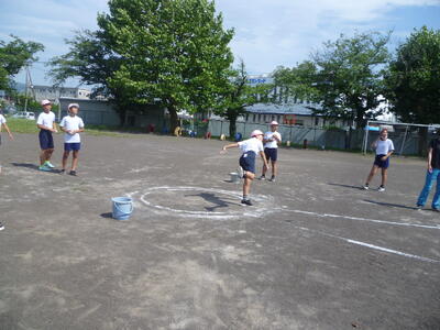 昨日の体育科の様子です。1組、2組合同で、体力テスト(ボール投げ)を行いました。気温が上昇したため熱中症対策も考慮し、記録の測定のみの実施でした。