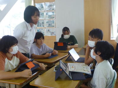 子どもたちは、たくさん質問し、意欲的に学習しています。