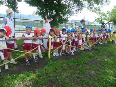 お天気は、昨日の雨でやや運動場がところどころ泥状になっていましたが、水をスポンジで吸い砂を入れることで何とかできる状態になりました。