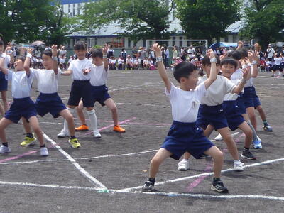1年生は、小学校生活初めての運動会でしたが、堂々とした演技ができました。2年生は、お互いに声を掛け合って隊形移動ができました。