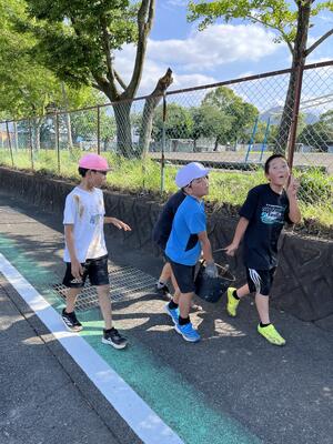 業間休みの様子です。今日も熱中症危険度が「厳重警戒」となっており、水分補給等の対策をしています。子ども達は15分休みになると、元気に運動場や中庭に出て遊んでいました。