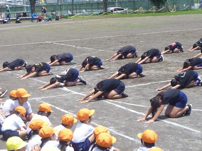 1年生は、小学校生活初めての運動会でしたが、堂々とした演技ができました。2年生は、お互いに声を掛け合って隊形移動ができました。