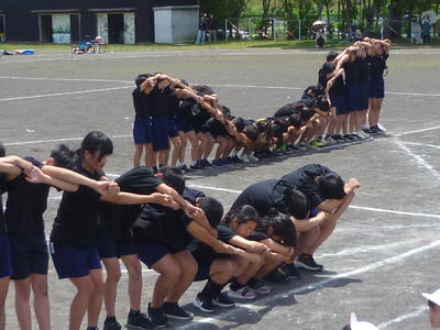 3年生の団競は、「長伏ハリケーン」(台風の目)です。抜きつ抜かれつの接戦が見物でした。