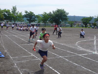 4チームで走りました。どの子も真剣な表情で取り組む姿が素敵でした。見ている方も、はらはらどきどきの展開でした。