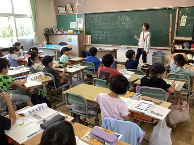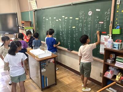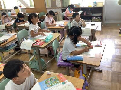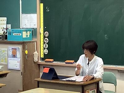国語科の授業では、「お礼文の書き方」について学習しました。お礼文の冒頭に、季節の挨拶を入れるということを学んだ子ども達。「蚊に刺される季節になりました」「かえるが多い季節になりました」等、身近な例をたくさん考えていました。ただ、目上の方に対するお礼文ということなので、教科書の例を参考にしながら再考しました。子ども達の意見を聞きながら、子どもの達ならではの視点に新鮮さを覚えました。