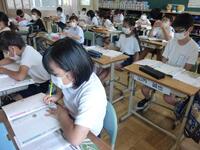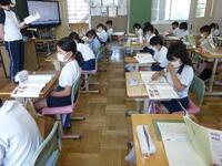授業の様子です。2年生算数の授業です。本日は担任が1日出張のため教頭先生や教務の先生が中心となって授業を進めています。今回の授業では、筆算の活用の仕方を勉強していました。
