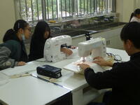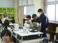 家庭科では、ミシンを使って布巾を作りました。今日は、中郷西中から長伏小を卒業した中学生3名が職業体験に来ていたので、サポートに入ってくれました。直線縫いで周囲を縫い、その後対角線を2本入れるように縫っていきました。対角線のところが難しかったようです。