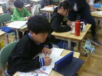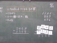 繰り上がり、繰り下がりの計算の学習でした。指定された数字カードを1枚ずつ使って、答えが1番大きくなる数と1番小さくなる数を見付ける学習でした。子供たちは繰り上がりや繰り下がりを意識しながら、筆算していました。友達が新しい答えを見付けると「え~!教えて!」と声が上がり、見付けた子は理由を説明していきました。「どういうこと?」「あ~、そうか!分かった!」「すごい!」というように、驚きと発見の授業でした。