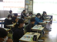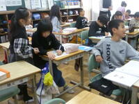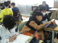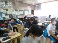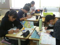 ちょうど、まとめの問題に取り組んでいるところでした。自分で問題を選択して、どのような形態で行うかも自分で決めています。分からないところは、友達に聞く、教員に教えてもらうなどします。そのような姿もスタンダードになってきました。