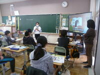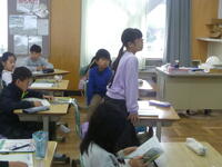 「Save the animals」の学習の様子です。生き物のためにできることは何か、発表をし合いました。「ものを大事にする」「ごみを少なくするためにリユースすること」「自然を大切にすること」「リサイクルも大切」など、家庭科でも学習したことをもとに話をしていました。