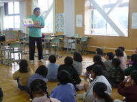朝の「長伏っ子タイム」では、SSWの河合さんが本の読み聞かせに来てくれました。子供たちは本の世界に浸りながら、ときには体で表現し、楽しんで取り組むことができました。