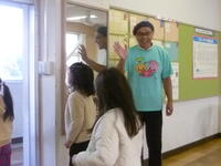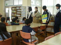 昨日と今日、中郷西中学校から3名の中学生が職業体験に来ています。今日は、1年生に大型絵本の読み聞かせや花壇の仕事に取り組みました。