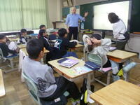外国語活動の授業では、短い英文の絵本を先生と一緒に読みました。繰り返しのフレーズがあり、子供たちは楽しく声をそろえて読んでいました。