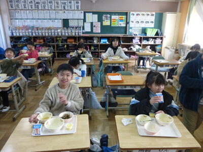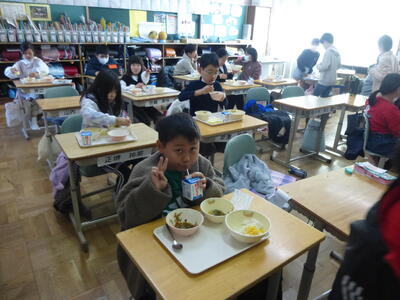 給食の様子です。おいしいです~とっても!自校給食のありがたさが分かります。