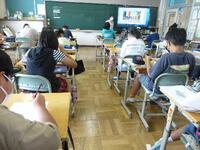授業の様子です。6年生英語の授業です。ヒヤリングで聞き取ったことに対して解答を書き込んでいるところです。日常の基本的な会話ならばなんとなく分かってそうな雰囲気~経験がものをいいますね。