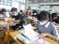 授業の様子です。6年生国語の授業です。まずは、ワークを使ってふりかえりをしています。