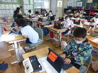 1年生授業の様子です。タブレットをつかって宿題を出しました。明日の宿題についても提出の仕方についてシミュレーション中です。