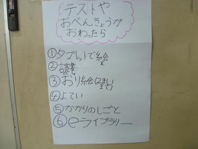 テストが終わったら、子供達は自学をします。今日は、eライブラリをしました。各自のペースで学習できるので、家庭学習でも取り組んでほしいです。問題の難易度も、学習者に合わせて選択できます。
