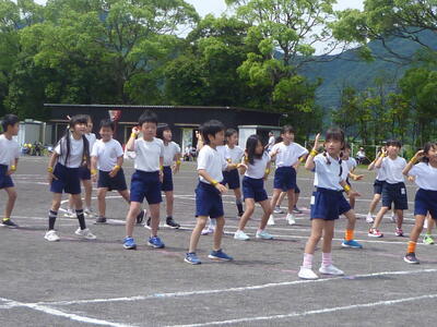1年生は、小学校生活初めての運動会でしたが、堂々とした演技ができました。2年生は、お互いに声を掛け合って隊形移動ができました。