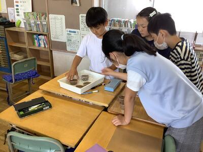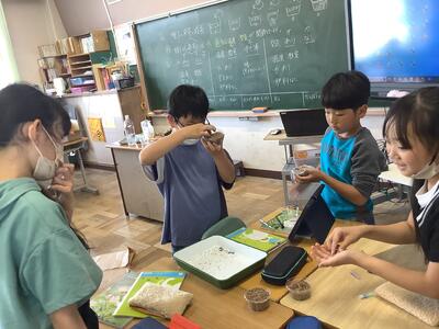 5年生が理科で発芽の実験をしていました。