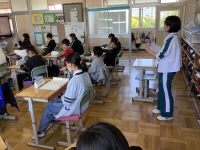 1校時、5年生の教育実習生が初めての授業を行いました。