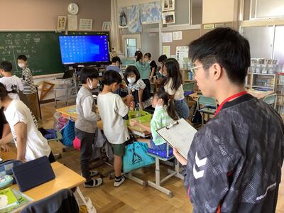 久しぶりの小学校の雰囲気は、日頃の学生生活と少し勝手が違うようです。
