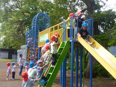 今日は、松本幼稚園の年中・年長の子供達が、長伏公園に行く道すがら、寄ってくれました。校庭の遊具で遊んだり、中庭を散策し1・2年生の子供達と触れ合ったりしました。1・2年生の松本幼稚園出身の子供達は、懐かしい先生方と会うことができて喜んでいました。