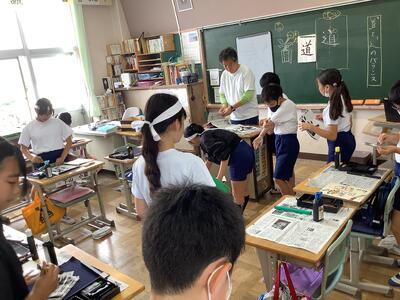 「しんにょう」に苦戦しながらも子どもたちは集中して作品を仕上げています。