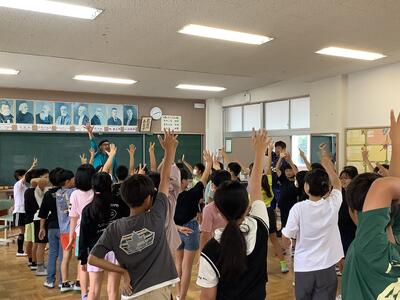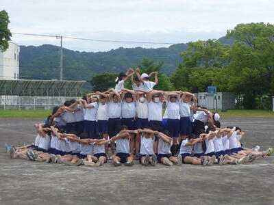 5・6年生が、団体演技「HERO誕生」の練習をしました。音楽に合わせて、演技をします。みんなで声を掛け合いながら動くことで、統一感のある演技になります。