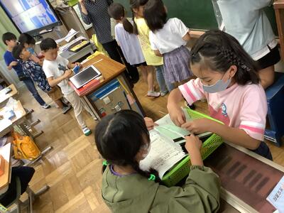 本日、朝の活動でふれあいタイムを行いました。5年生には、外部講師をお呼びして読み聞かせとそれにちなんだゲームを行いました。ゲームを通して、いきいきと表現する様子がとても楽しそうでした。3年生では、「9月生まれ」「字をていねいに書く」など、条件に合う子をクラスで探し、サインをもらう活動を行っていました。友達についてより知ることが出来る時間となっていました。