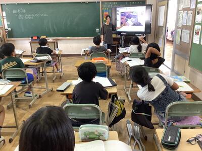 県の水資源課の方が来校くださり、4年生の教室で「水の出前授業」が行われました。
