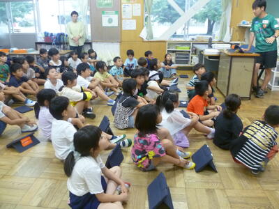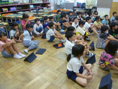 1年生は小学校最初の夏休み、6年生は小学校生活最後の夏休みの説明を受けていました。