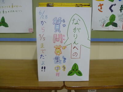 「ながりん」への質問は、昇降口前で事前に募集箱を用い、集められました。