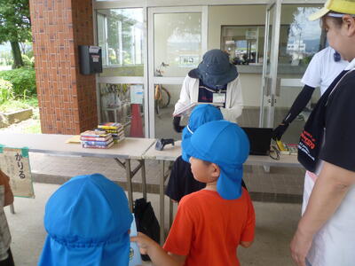 学級ごとに、夏休みの本の貸し出しを行っています。お目当ての本があると、とても嬉しそうな表情でした。