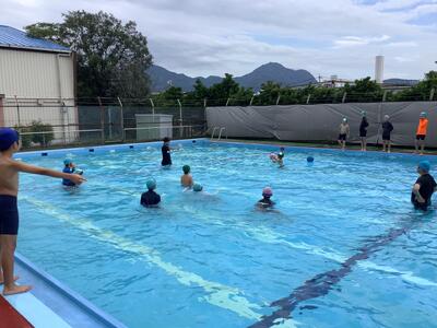 ボールクラブの活動では、水球を行っていました。普段のドッジボールとは異なり、ボールを避ける手段として潜ることも行い、積極的にゲームに取り組む様子が見られました。