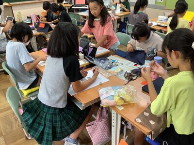 教室では色紙を使って、子どもたちが様々な飾りを作成しています。
