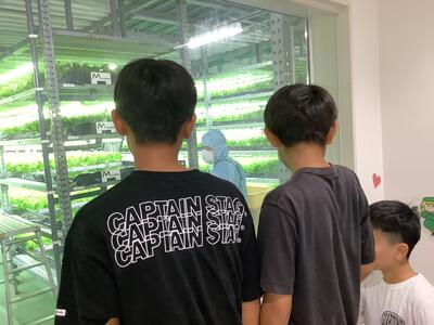 先進的な栽培の様子が、自分たちの足が届く距離で見られることに子どもたちは感心していました。