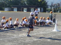 学級を2グループに分け、2人1組のバディをつくりました。記録の子はバディを一生懸命応援しながら、○周と○コーン分走ったかを確認しました。体調を管理して、記録を伸ばしていけるといいです。