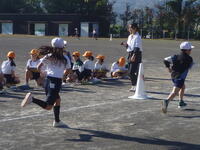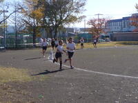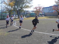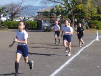 体育科では、持久走(4分間走)に取り組んでいます。まだ始めたばかりなので、まずは自分のペースをつかむことが大切です。残り30秒になってくると、とても苦しそうでしたが、頑張って走りきることができました。