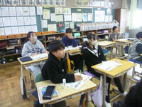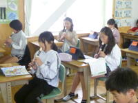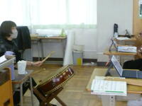「ソーラン節」のリコーダー演奏と太鼓の音が心地よい感じで聞こえてきました。早速、音楽室をのぞいてみると、子ども達が真剣に演奏の練習をしていました。合いの手係がいないようだったので、参加させてもらいました。