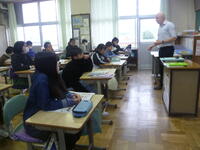 ALTが話した日本語を、子ども達が英語にして発表しました。「今日の天気はどうですか?」「あなたの名前は何ですか?」「~と~では、どちらが好きですか?」など、今まで習った単語を使って表現しました。