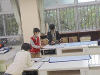5年生が家庭科の授業でアイロン、ミシンに挑戦中。上手にできるかな。