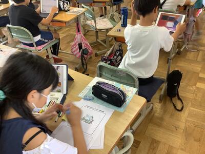 5年生 図工 投稿日時 : 2024/06/14 サイト管理者 5年生が、「絵本のまち三島」のロゴをデザインしています。 (三島の特長や個々の絵本への思いを込めるには、どうすればよいか。)に 頭を悩ませています。 一気に描きあげる子もいれば、入念に慎重に描き進める子、筆を止めて再考する子もいて 難しい課題のようです。 どんな作品ができあがるか楽しみです。