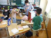 2年生生活科の授業です。うごくおもちゃをグレードアップしています。みんなからの情報を得て、よりよいおもちゃづくりを行っています。