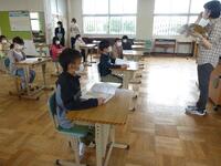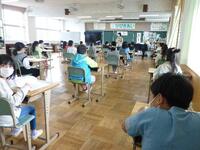 授業の様子です。4年生音楽の授業です。感染症対策を徹底しながら取り組んでいます。