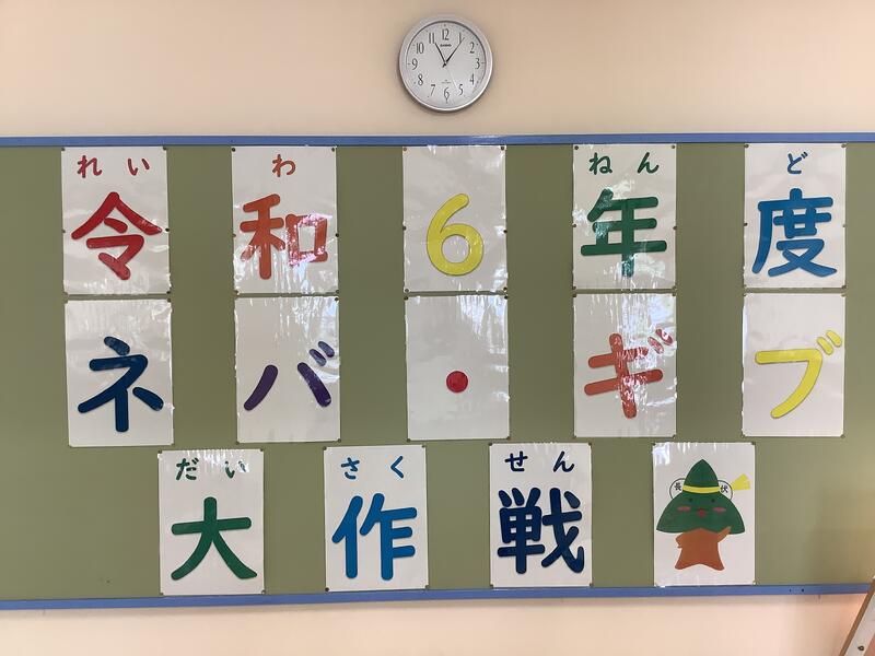 学校教育目標「底力を発揮し、豊かな未来を切り拓く子」から、本年度「粘り強く取り組む」ということを子どもたちと共有し、取り組んでいます。4月に校長先生から子どもたちに「粘り強く取り組む力を身につけて欲しい」とのお話があった後、作戦名が子どもたちから応募されました。たくさんの応募があり、児童会の子どもたちや校長先生の選考を経て、作戦名が決まりました。作戦名は「ネバ・ギブ大作戦」。一人一人がミッションを達成し、実りの多い年度にしてほしいと願っています。
