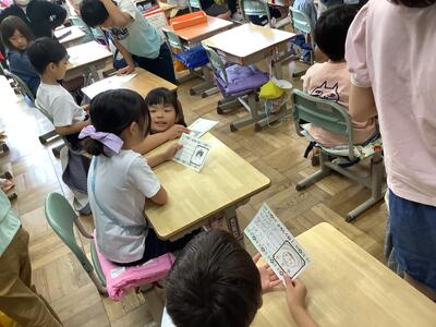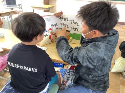 6年生はどうしたらいいか焦っていましたが、だんだん1年生との距離が縮まった様子でした。1年生に本を読んであげたり、絵しりとりをしたりするなど、楽しそうに遊んでいました。6年生は教室に帰ってから「かわいかった」「また遊びたい」などの声をあげていました。