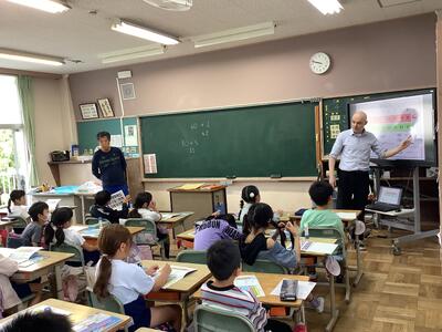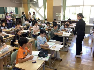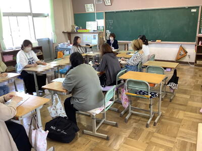 始めて授業参観を体験する教員も、がんばっています。