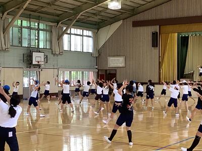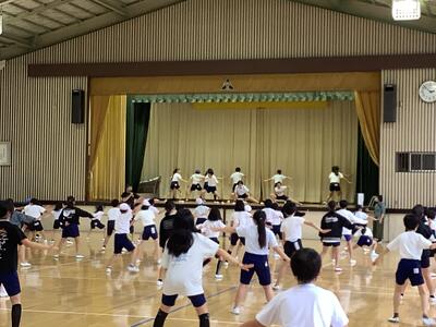 5・6年生が体育の授業で、ソーラン節の合同練習を行っていました。実行委員がステージに上がり、力強く踊っていました。掛け声も元気が良く、今から本番の踊りが楽しみです。